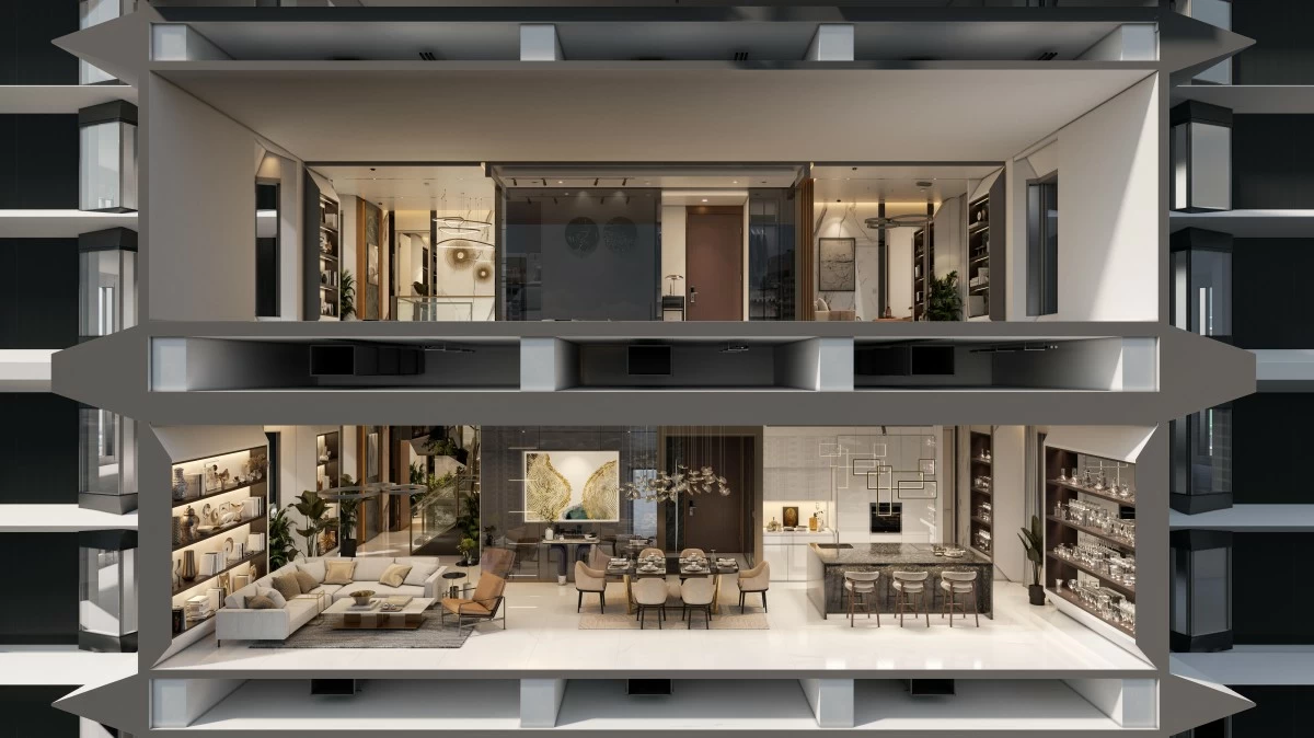 The unique four-bedroom bi-level units are 300-355 square meters.